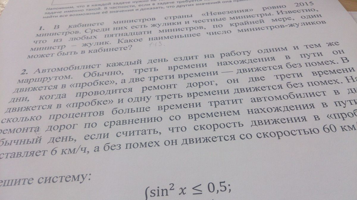по крайне мере из 15 министров 1 жулик, следовательно 30- 2 жулика и т.д