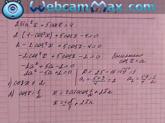 a2=(5+3)/4=2⇒cosx=2>1 нет решения