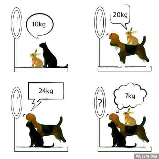 кот на кг больше зайца (из 3 и 4 картинки), а кот и заяц весят 10 кг, следовательно кот-7 зайц-3