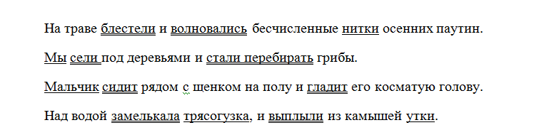 Выпиши сначала простые предложения,а потом сложные.Расставь знаки препинания.Подчеркни грамматические основы предложений. На траве блестели и волновались бесчисленные нитки осенних паутин.Мы сели под деревьями и стали перебирать грибы.Мальчик сидит рядом с щенком на полу и гладит его косматую голову.Над водой замелькала трясогузка и выплыли из камышей утки.