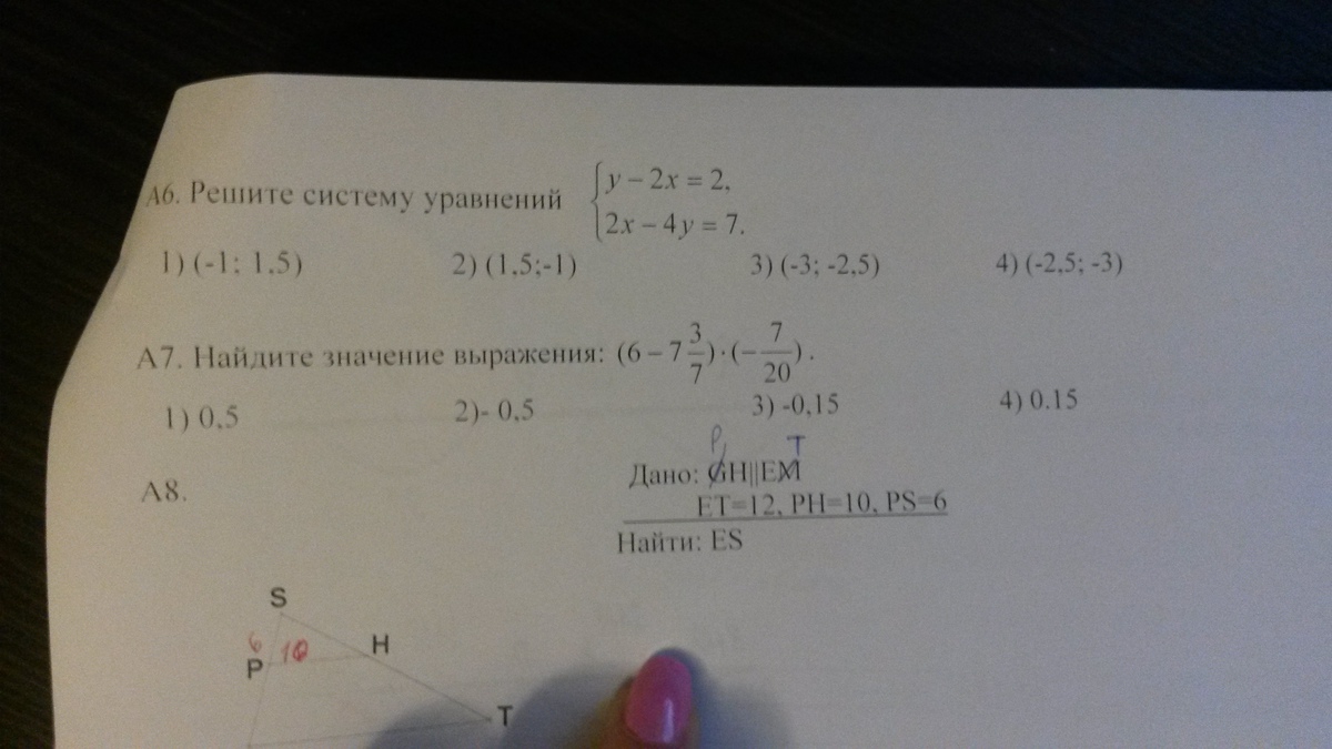 6-7 3/7=-10/7 -10/7*(-7/20) =0,5 ответ номер 1