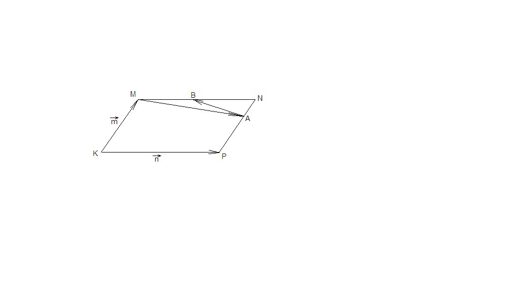 в параллелограмме KMNP точка B-середика стороны MN ,A -точка на отрезке PN, такая , что PA:AN =2:1 .вырозите вектор MA и ABC РЕЗ векторы m=KM и n=KP
