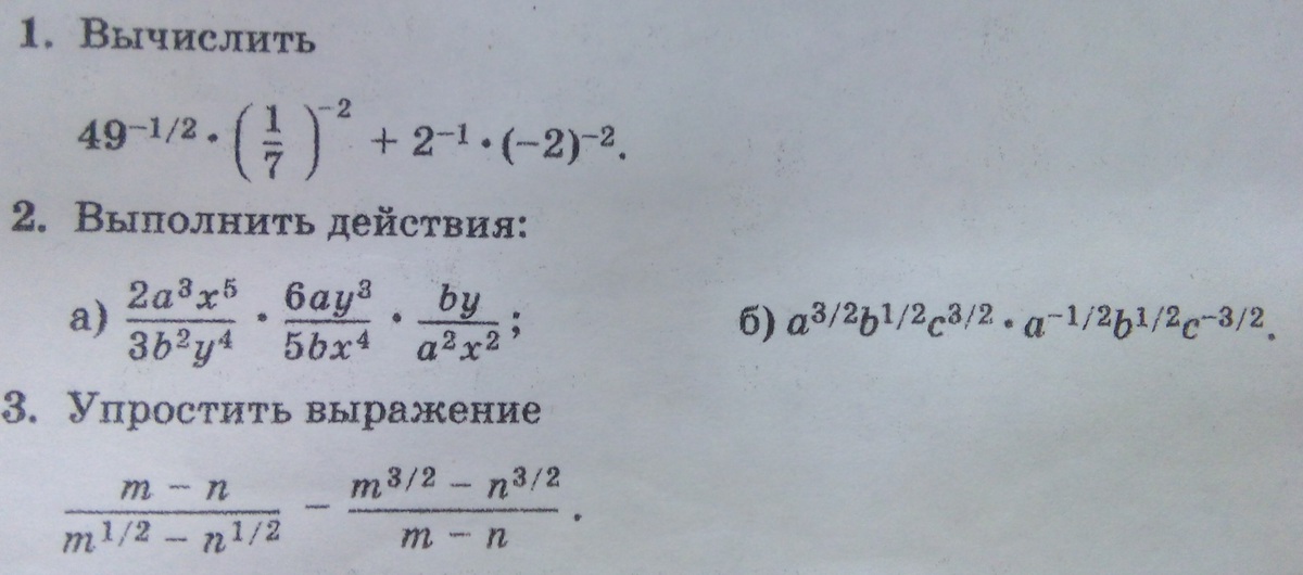 3) ((m-n)(m¹/²+n¹/²)-(m³/²-n³/²))/(m-n)= (m³/²-nm¹/²+mn¹/²-n³/²-m³/²+n³/²)/(m-n)=(mn¹/²-nm¹/²)/(m-n)=m¹/²n¹/²(m¹/²-n¹/²)/(m-n)=(mn)¹/²:(m¹/²-n¹/²)=√mn/(√m-√n)