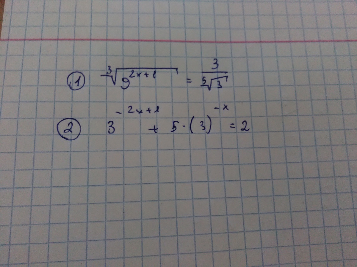1) ![sqrt[3]{9 ^{2x+1} } = frac{3}{ sqrt[5]{3} } sqrt[3]{9 ^{2x+1} } = frac{3}{ sqrt[5]{3} }](https://tex.z-dn.net/?f=+sqrt%5B3%5D%7B9+%5E%7B2x%2B1%7D+%7D+%3D+frac%7B3%7D%7B+sqrt%5B5%5D%7B3%7D+%7D+)