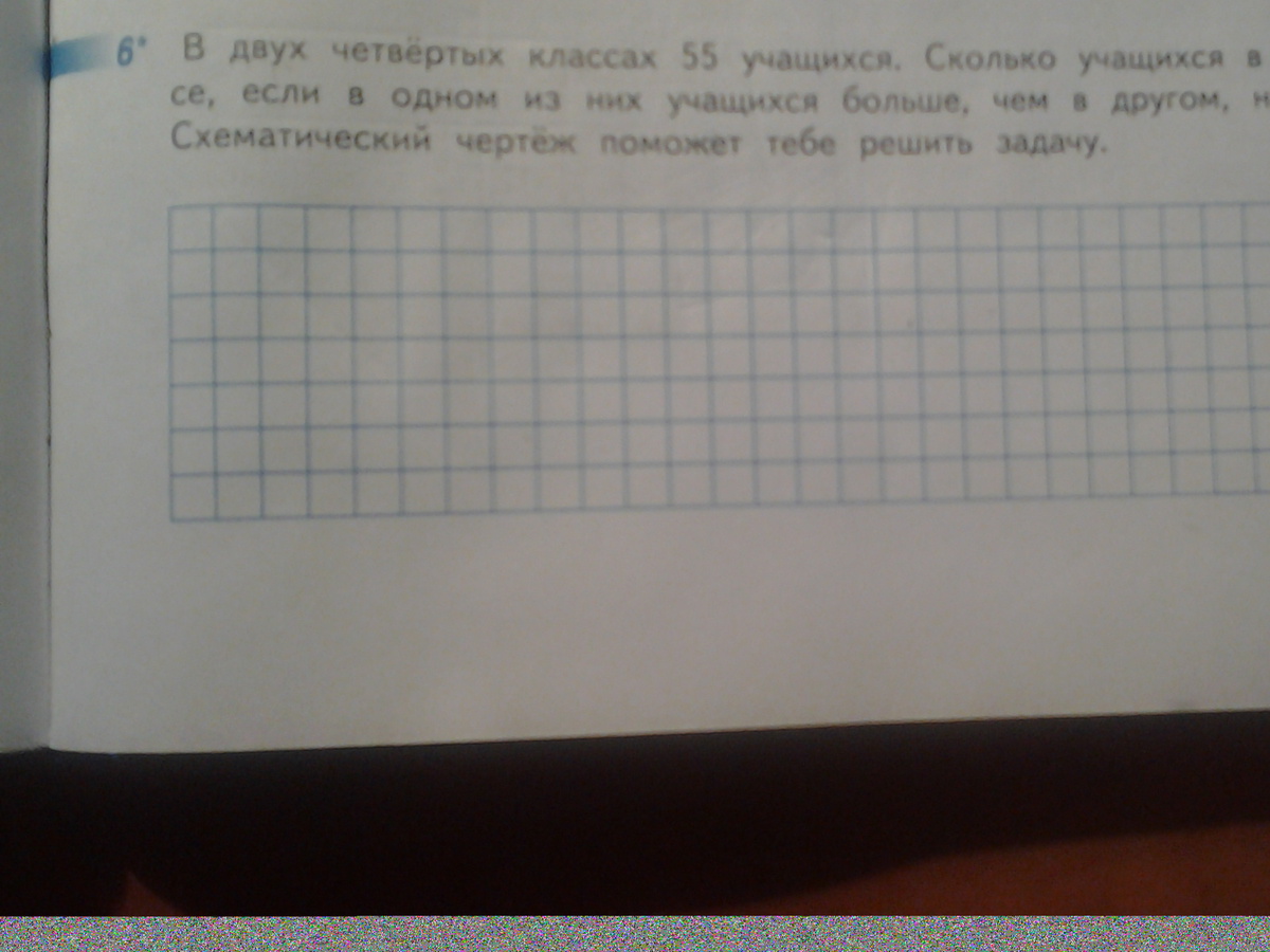 составим уравнение, мы знаем , что в обеих классах 55 учеников: