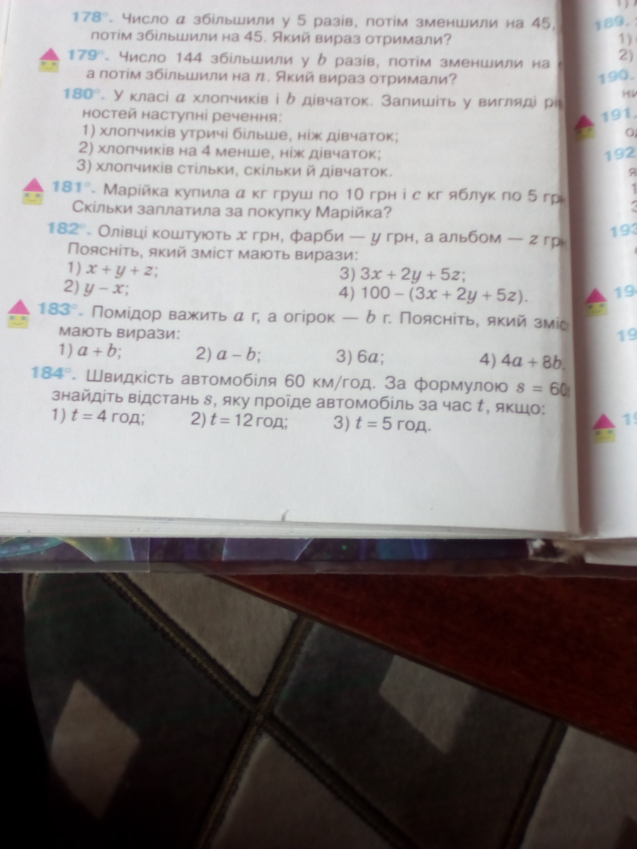 швидкість автомобіля 60км/год.Заформулою. s= 60t знайдіть відстань s, яку проіде автомобиль за час t якщо: 1)t=4год; 2)t=12год; 3)t=5год.