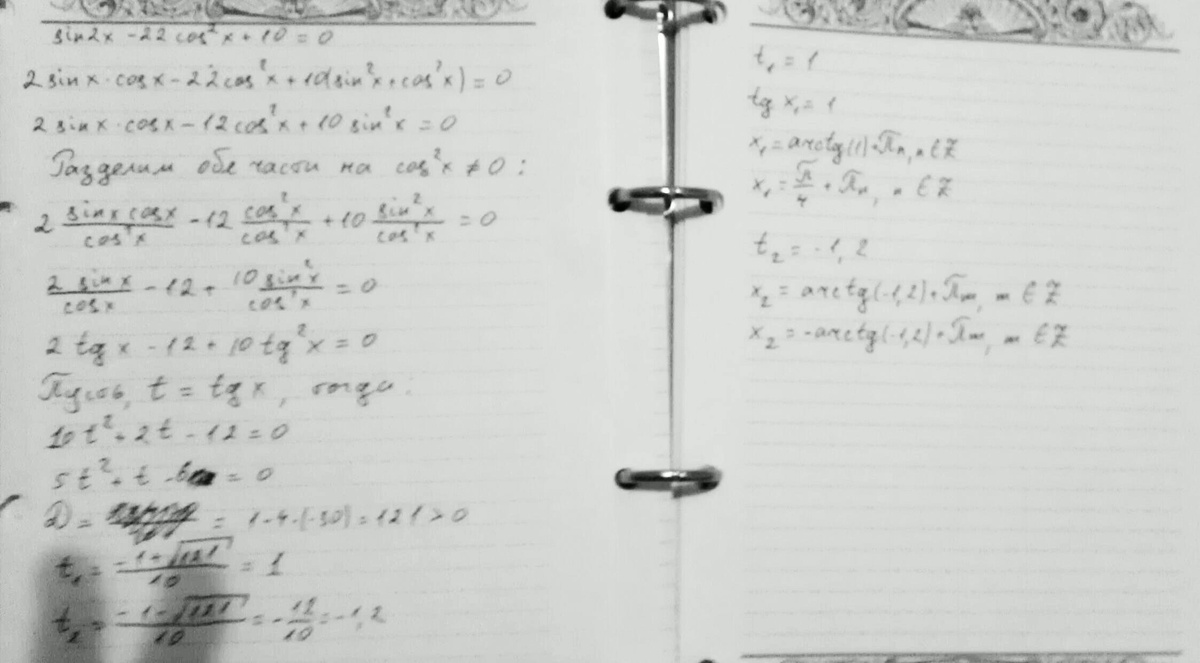 14sinxcosx - 22cos^2x + 10(sin^2x + cos^2x) = 0