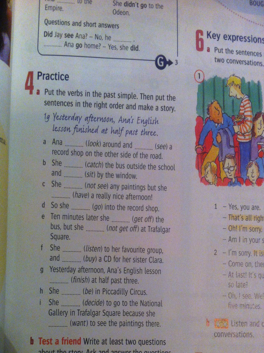 g)Yesterday afternoon, Ana's Engilsh lesson finished at half past three