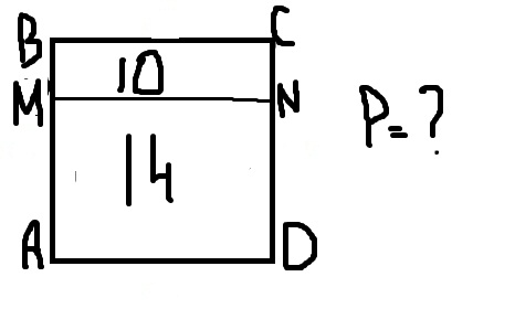 Помогите!Очень срочно!!Квадрат ABCD разбит на прямоугольники AMND и MBCN,периметры которых равны 14 см и 10 см,соответственно.Найдите периметр квадрата ABCD.Только пожалуйста не пишите ответ 24 см,потому что это неправильно.