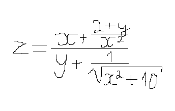 z:=(x + (2 + y)/x) / (y + 1/(sqrt( sqr(x) + 10 ));