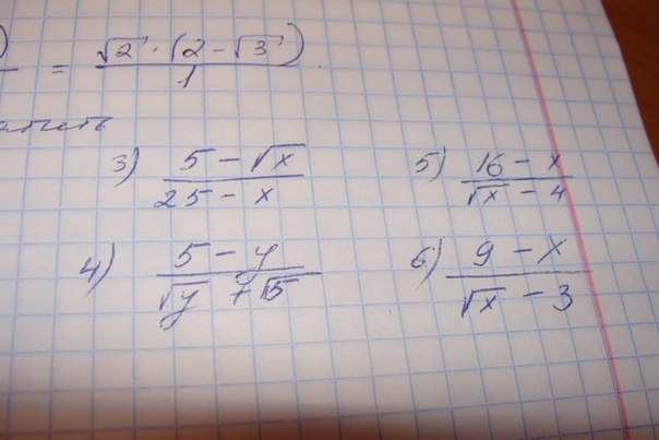 3) =(5-корень(х))/( ((5-корень(х) )*(5+корень(х) ))=1/ (5+корень(х))