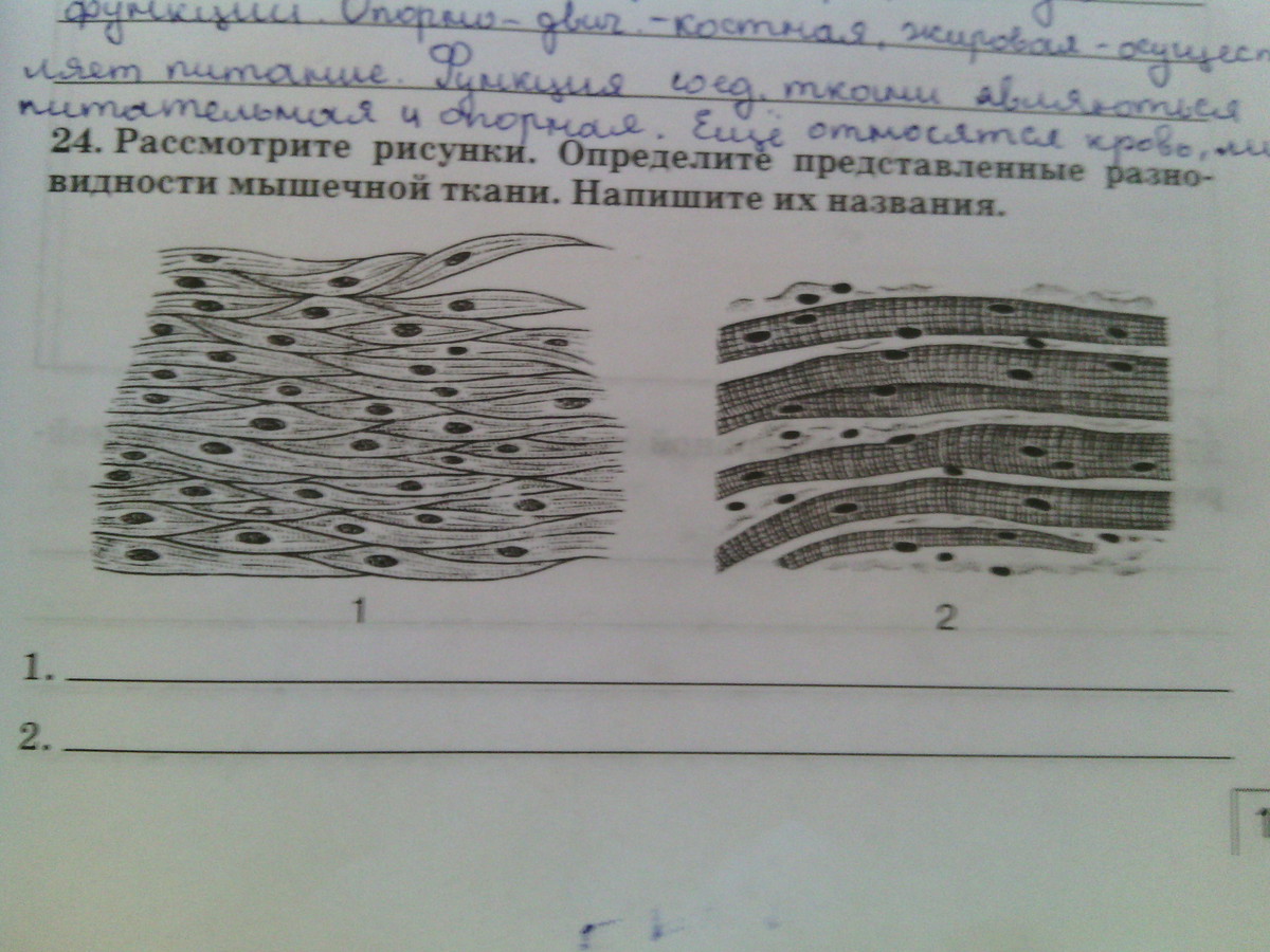 Рассмотрите рисунки.Определите представленные разновидности мышечной ткани.Напишите их названия.
