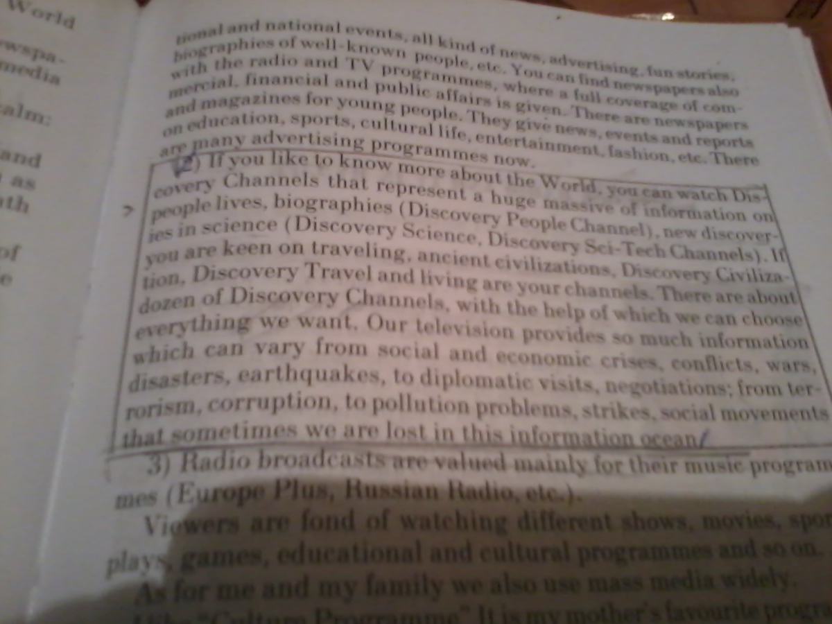 Если вам нравится узнавать больше о мире, вы можете смотреть исследовательские каналы, которые предоставляют огромное количество информации о жизни людей, биографиях, новых открытиях в науке. Если ты любишь путешествия, древние цивилизации, открытия в древних цивилизациях и жизнь - это твои каналы. Здесь о десятке Discovery каналов, с помощью которых мы можем выбрать всё, что хотим узнать. Наше телевидение обеспечивает настолько много информации, которая варьируется от социальных и экономических критериев, конфликтов, войн,