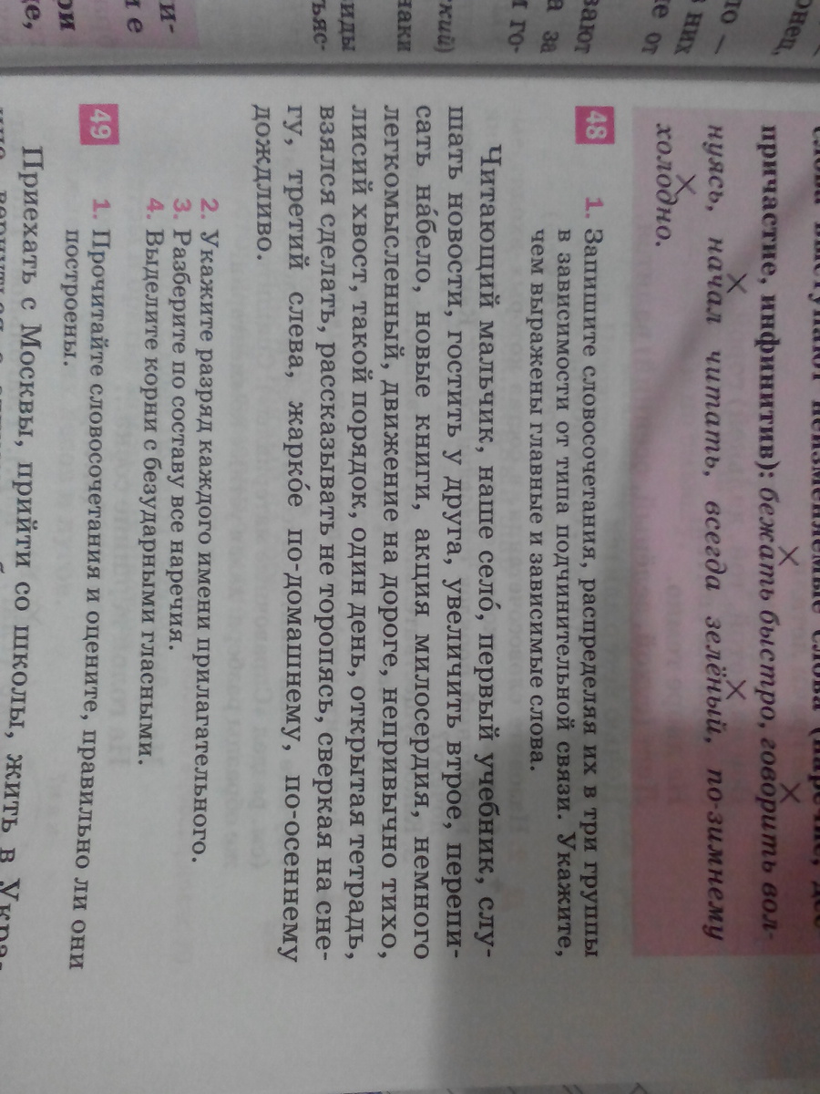 Читающий мальчик,первый учебник,новые книги,лисий хвост,открытая тетрадь,такая погода,один день,третий слева(не точно) - согласование; наше село,слушать новости,гостить у друга,акция милосердия,движение на дороге,сверкать на снегу, а все остальное - примыкание.