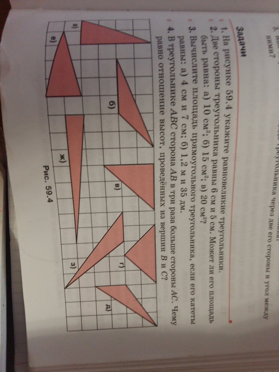делаем вывод: равновеликие треуг-ки: а,г,е,ж,з и б,д.