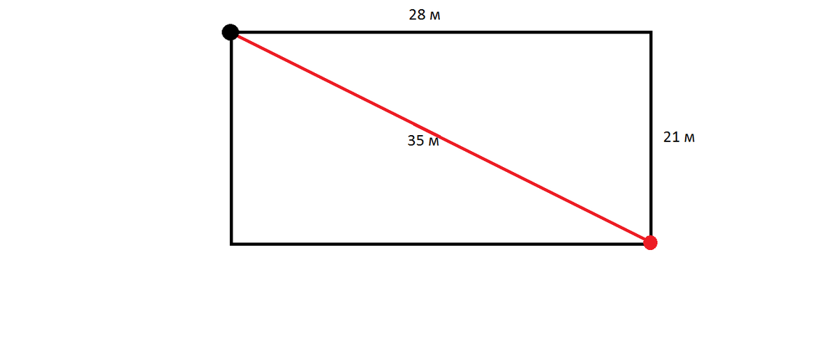 перемещение равно длине гипотенузы треугольника с катетами 21м и 28м
