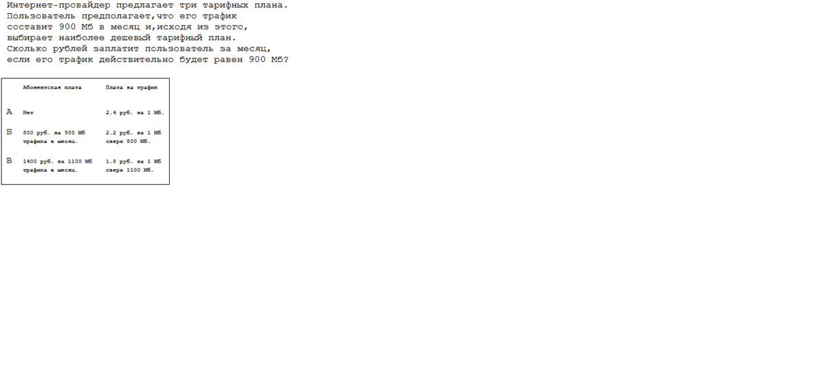 План В: 1400, так как 900 Мб помещаются в трафик по абоненской плате.