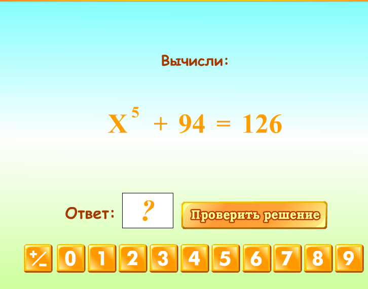 x^5=126-94. x^5=32. Извлекаем корень 5 степени и получаем 2