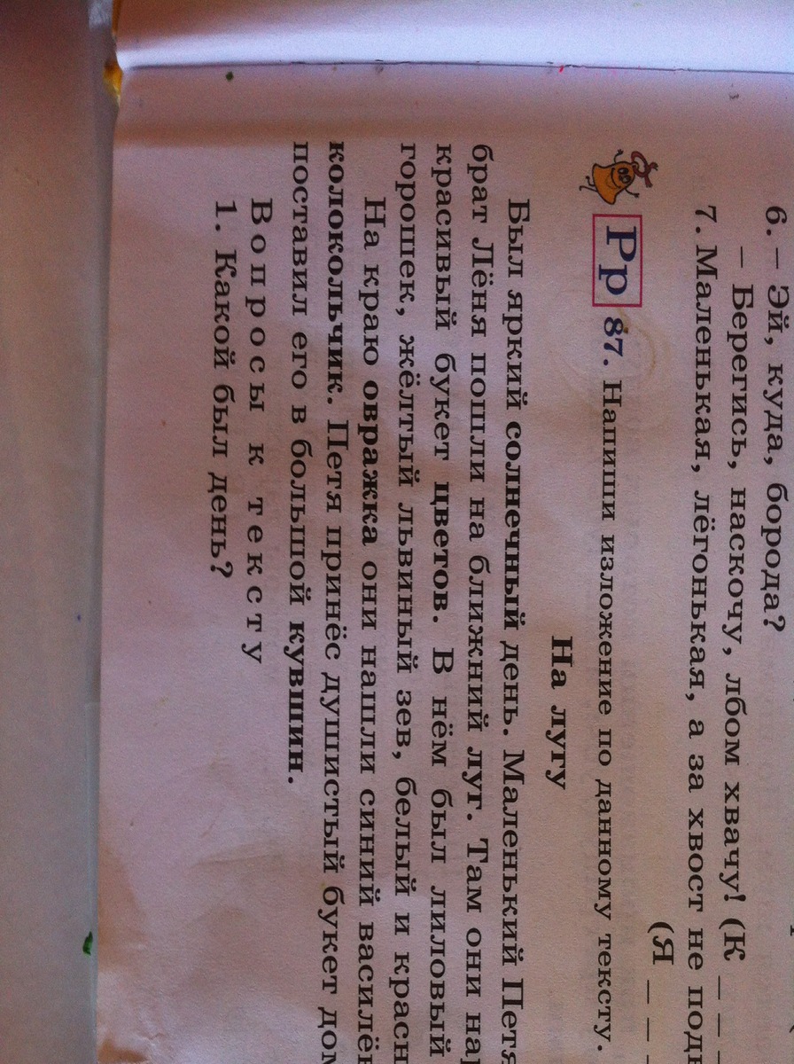 Наступал солнечный день.Мальчики отправились на луг.В том месте ребята нашли букет цветов.В нём они увидели (напишешь что именно,просто мне половину этого текста не видно).