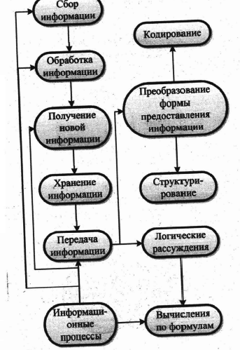 Постройте граф, отражающий отношения между следующими понятиями: информационные процессы, сбор информации, обработка информации, хранение информации, передача информации, получение новой информации, преобразование формы, представления информации, вычисления по формулам, структурирование, логические рассуждения, кодирование.
