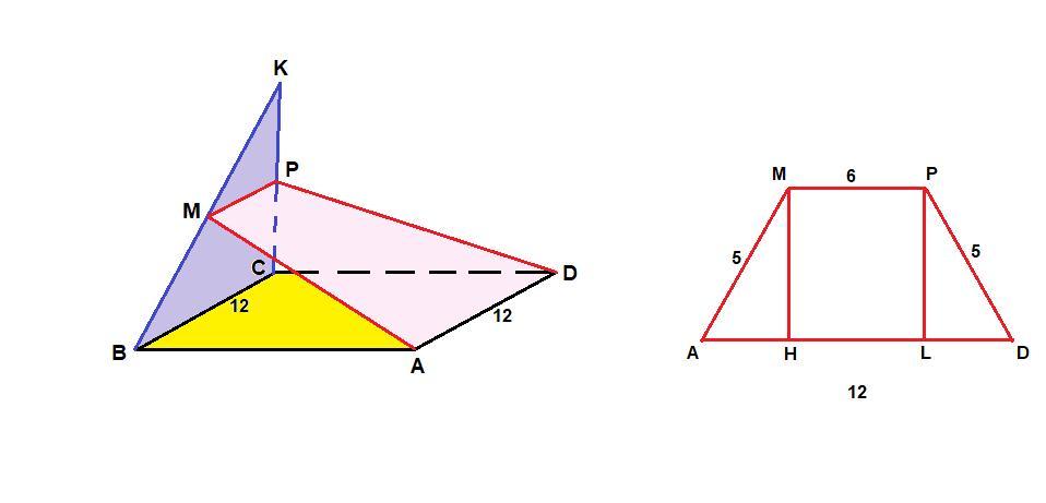 Квадрат ABCD и равнобедренный треугольник KBC(KB=BC) лежат в разных плоскостях. M и P -- середины отрезков BK и CK.