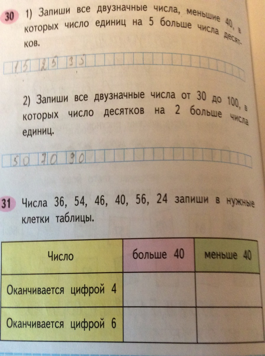 Числа получаются если 1 десяток, то единиц будет: 1 + 5 = 6, т.е. число 16если 2 десятка, то единиц будет: 2 + 5 = 7, т.е. число 27если 3 десятка, то единиц будет: 3 + 5 = 8, т.е. число 38