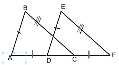 AB=DE,BC=EF,AD=CF. Докажите,что AB//DE. Доказательство. 1)АС=DF,так как_____________________________ 2)треугольник АВС=треугольнику DEF по________________,следовательно,уголВАС=углу EDF,а эти углы__________________________________________________________,поэтомуAB//DE