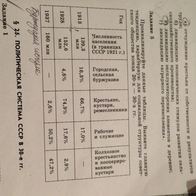 Проанализируйте данные таблицы. Выявите главную тенденцию, характерную для социальной структуры советского общества конца 20-х- 30-х годов