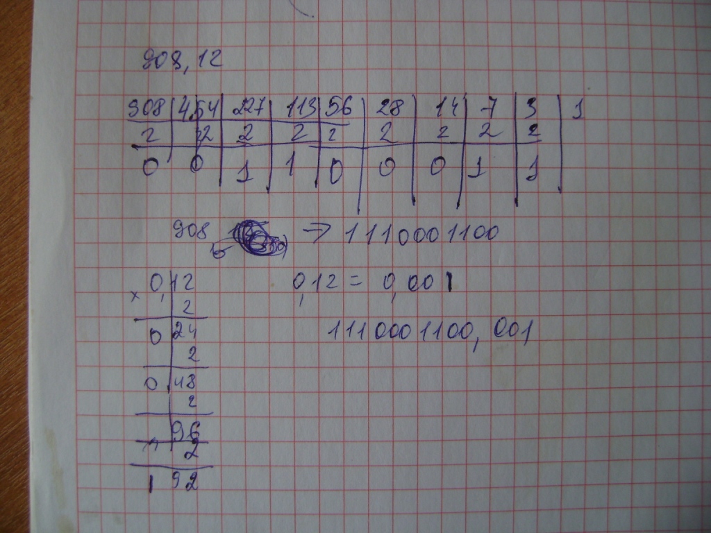 Правило перевода правильных дробей из десятичной системы счисления в любую другую. 1. Последовательно умножаем данное число и получаем дробные части произведения на основание новой системы счисления до тех пор, пока дробная часть произведения не станет равна нулю или не будет достигнута требуемая точность представления числа. 2. Составить дробную часть числа в новой системе счисления, начиная с целой части первого произведения.
