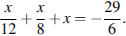 Нам нужно избавиться от знаменателя,поэтому мы домножаем дробь на НОК(12,8,6). Их НОК=24