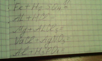 2Al + 6HCl = 2AlCl3 + 3H2^