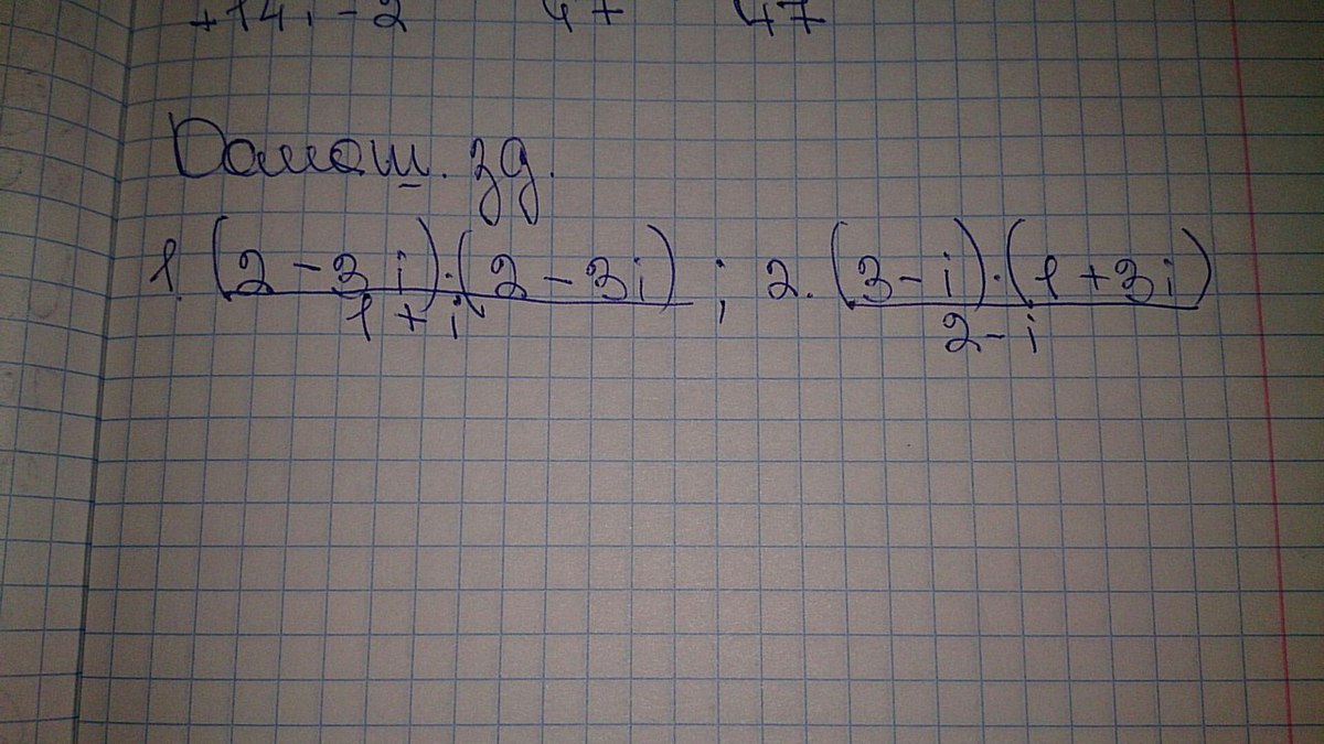 1); frac{(2-3i)(2-3i)}{1+i}=frac{(2-3i)^2}{1+i}=frac{4-12i+9i^2}{1+i}=frac{4-12i+9cdot (-1)}{1+i}=frac{-5-12i}{1+i}=\\=frac{-(5+12i)(1-i)}{(1+i)(1-i)}=frac{-(5-5i+12i-12i^2)}{1-i^2}=frac{-(7i+5+12)}{1-(-1)}=frac{-(17+7i)}{2}\\2); frac{(3-i)(1+3i)}{2-i}=frac{3+9i-i-3i^2}{2-i}=frac{3+8i+3}{(2-i)}=frac{2(3+4i)(2+i)}{(2-i)(2+i)}=frac{2(6+3i+8i+4i^2)}{4-i^2}=\\=frac{2(6+11i-4)}{4-(-1)}=frac{2(2+11i)}{5}