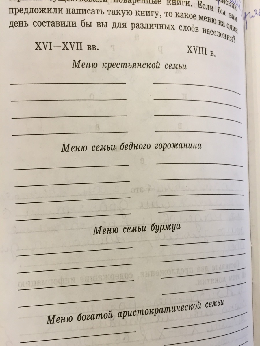 Срочно помогите! Буду очень признательна. Как вы знаете, в XVI-XVII вв. В европейских странах существовали поваренные книги. Если бы вам предложили написать такую книгу, то какое меню на один день составили бы вы для различных слоёв населения? Заранее спасибо!!!