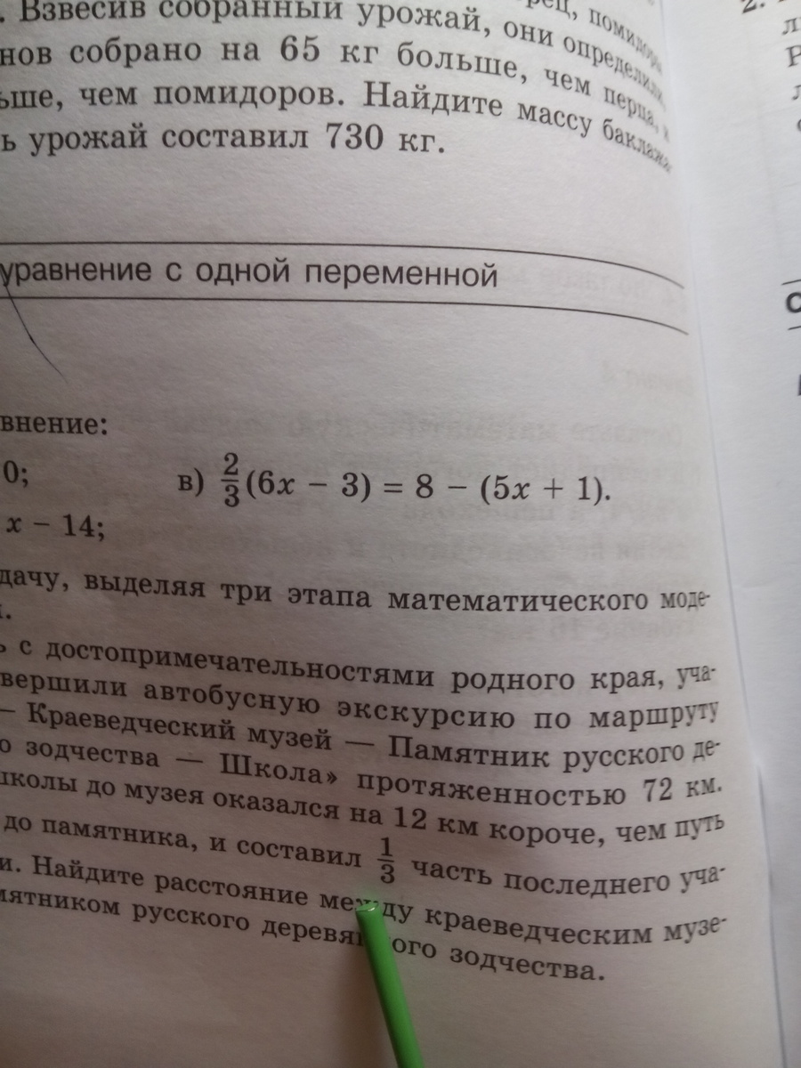 2(6x-3)/3=8-5x-1 (12x-6)/3=7-5x ( 12x-6)*1=(7-5x)*3 12x-6=21-15x 12x-6-21+15x=0 27x-27=0 27x=27 x=1