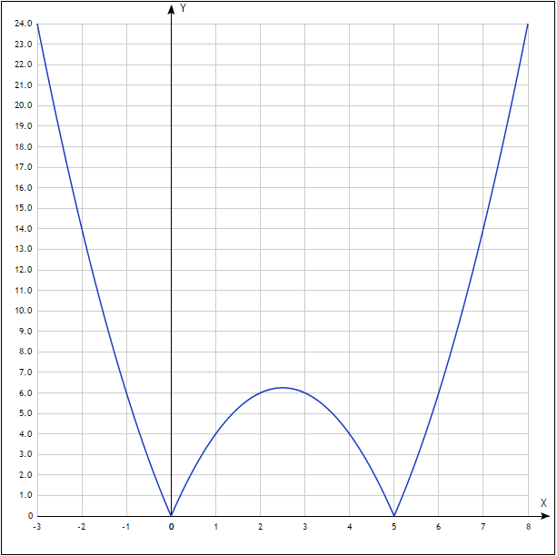 На этом отрезке график параболы "отражается" относительно оси абсцисс.