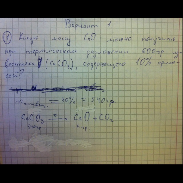Какую массу СаО можно получить при термическом разложении 600гр известняка СаСО3, содержащего 10% примесей?
