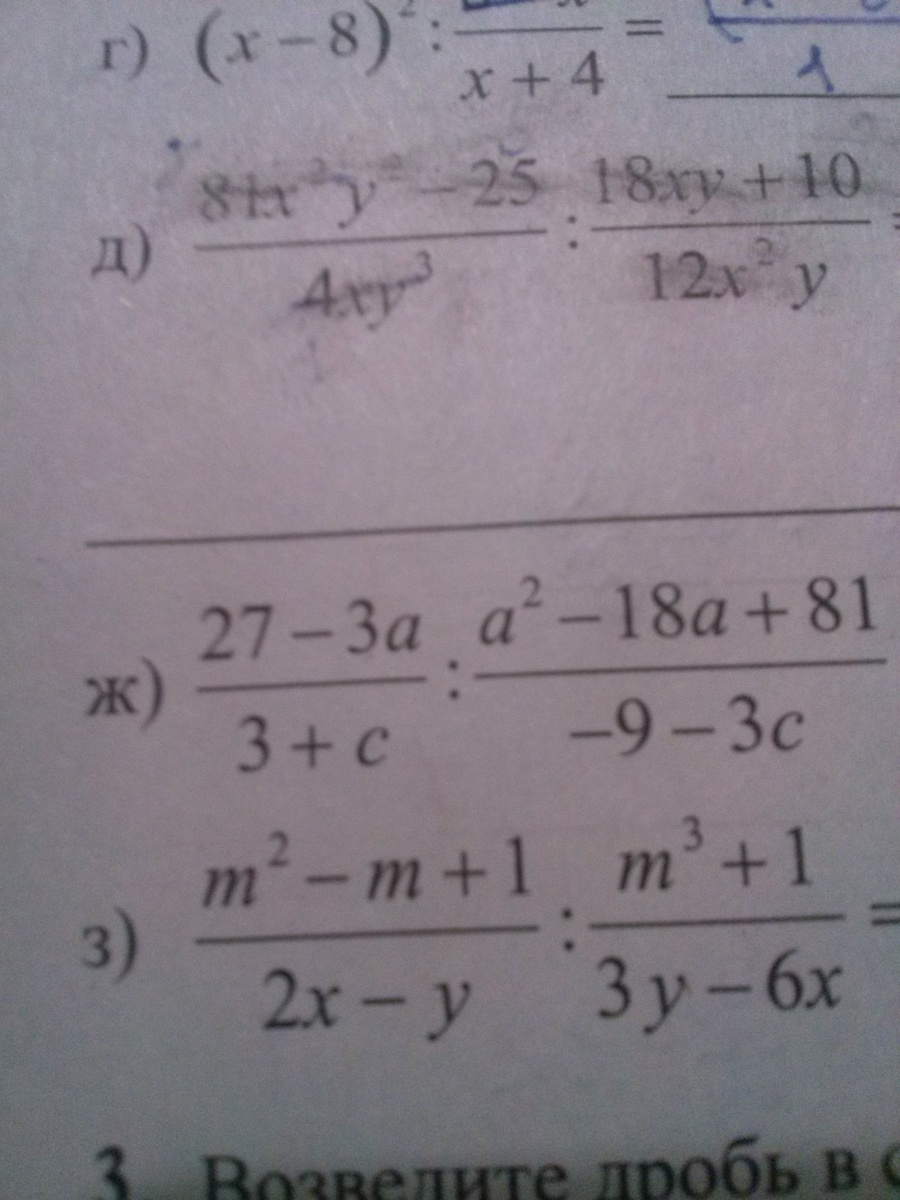 Выполните деление, полученные выражения упростите. Только д) и з)