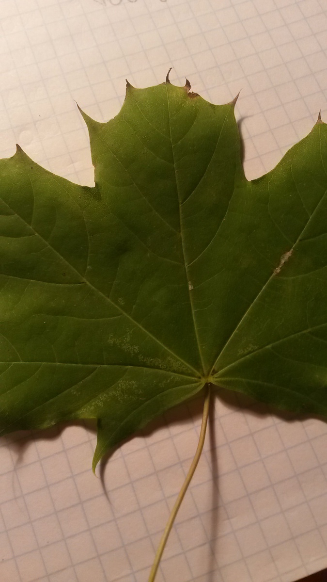 разделить листик на геометрические фигуры (треугольники, прямоугольники и т.д.) и узнать площадь каждой фигуры по отдельности, далее сложить полученные площади