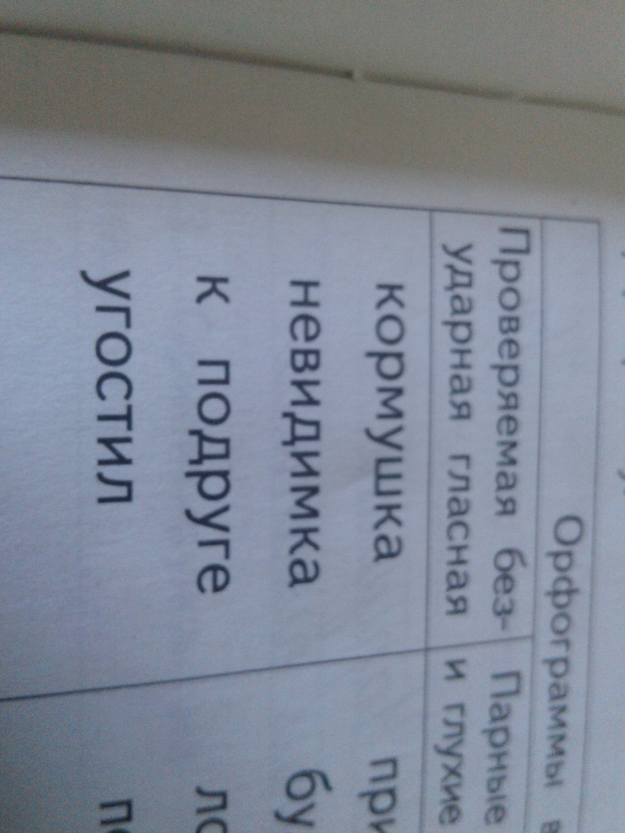 проверяемая безударная гласная-кормушка, неведимка, к подруге, угостил. какое слово лишнее. помогите