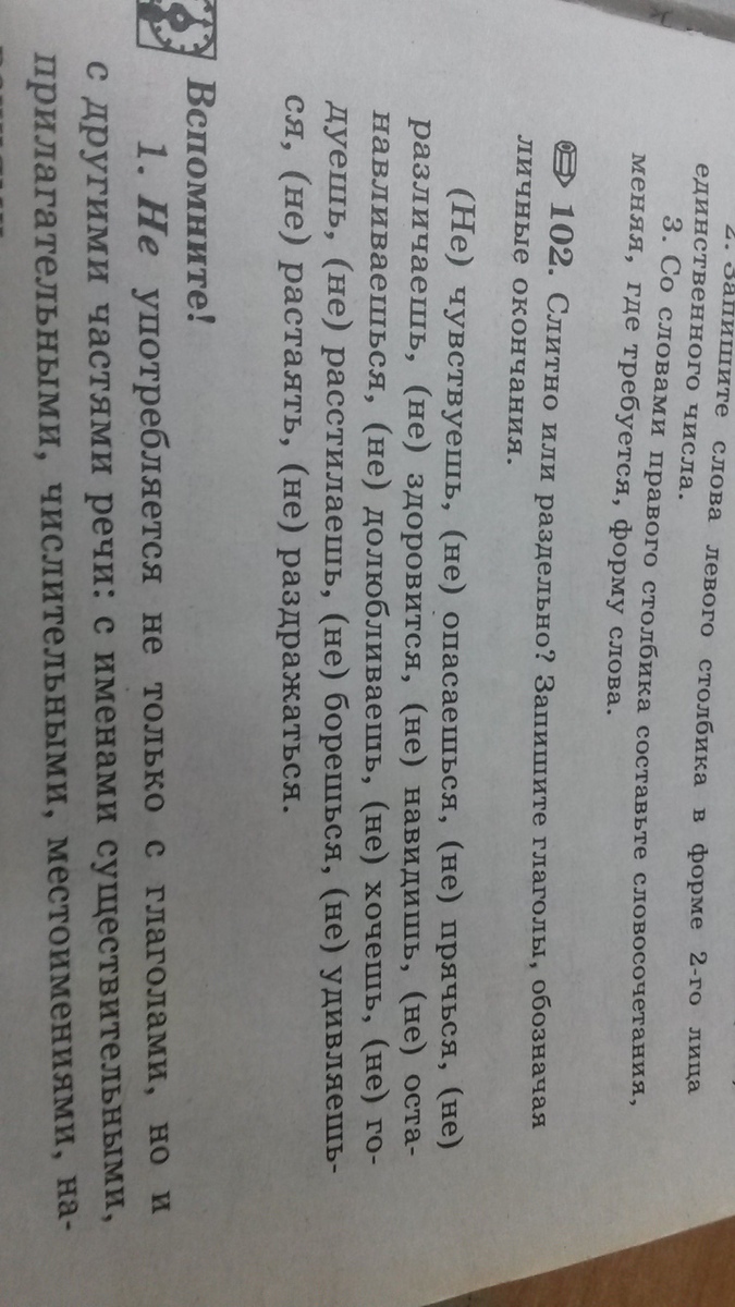 Не чувствуешь, не опасаешься, не прячься, не различаешь, нездоровится, ненавидешь, не останавливаешься, недолюбливаешь, не хочешь, негодуешь, не расстилаешь, не борешься, не удивляешься, не расстаять, не раздражаться.
