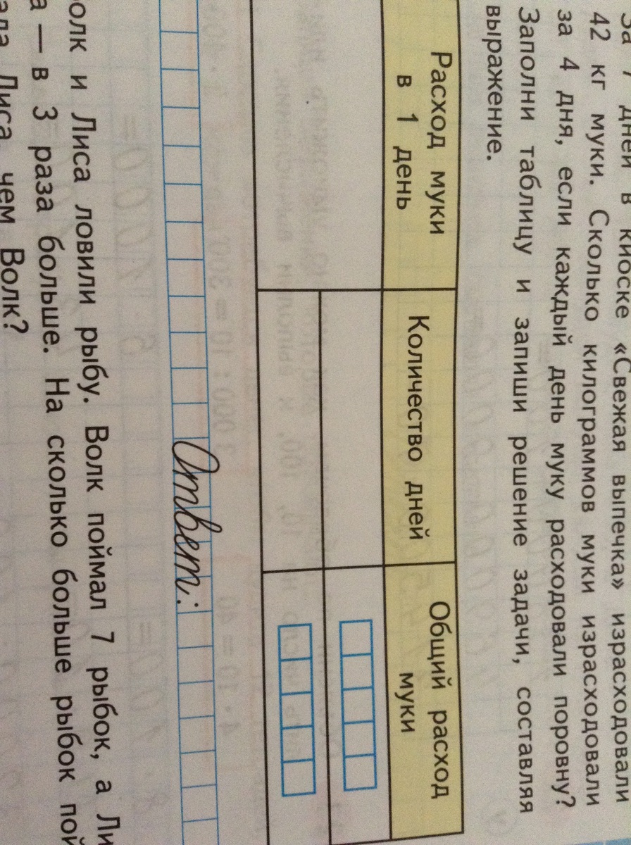 Заполни таблицу и запиши решение задачи, составляя выражение