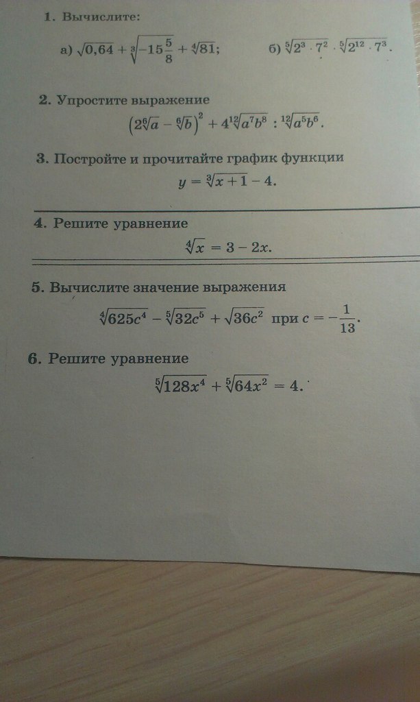 а) √0,64 + ∛-15 ⁵/₈ +⁴√81= 0,8 + ∛-¹²⁵/₈ + ⁴√3⁴ =