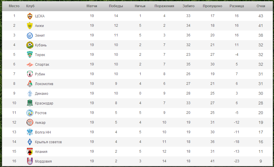 - по результатам игр между собой (число очков, количество побед, разность забитых и пропущенных мячей, число забитых мячей, число забитых мячей на чужом поле);