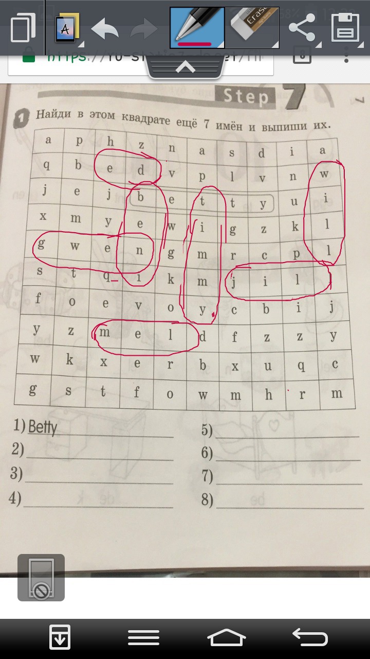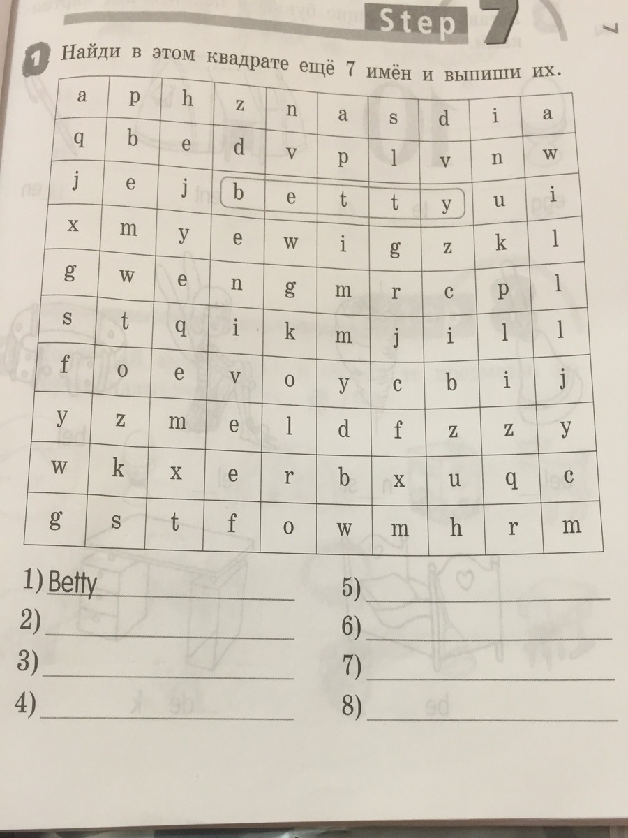 Найди в этом квадрате еще 7 имен и выпиши их