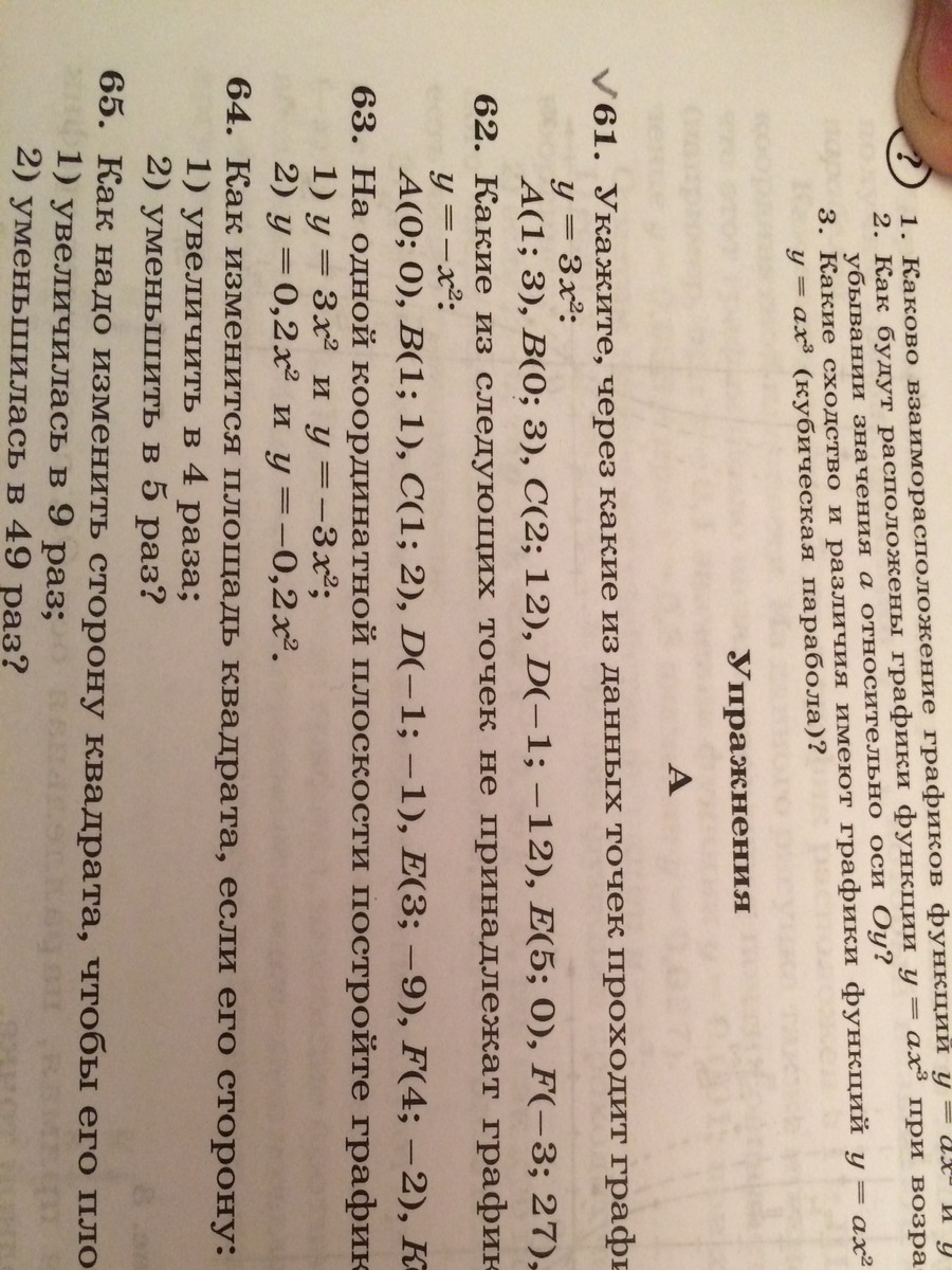 Например А(1;3) 1 это х, 3 это у ставим 3=3* 1^2