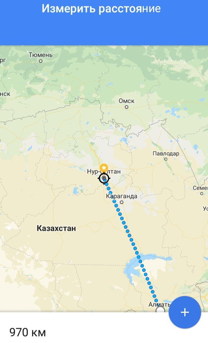 Согласно имеющимся данным ближайшее ( средние ) расстояние между городами Алматы и Нур-Султан = 970 км = 970000 м