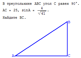 В треугольнике ABC угол С равен 90 градусам. АС = 25, sinA = (4/корень из 41). Найдите BC.