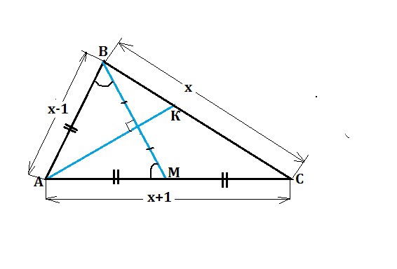 Тогда АС=2х=х+1, откуда х=1, и ВС=1-1=0, чего быть не может. ⇒