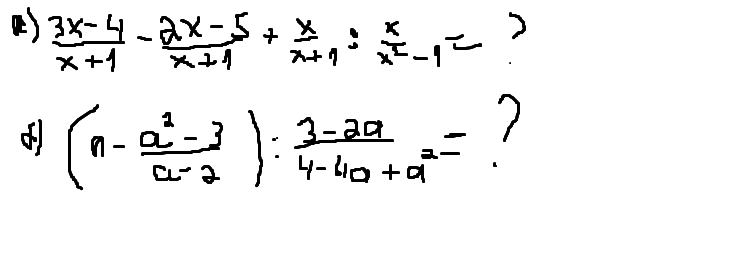 а) 3х-4/х+1 - 2х-5/х+1 +х/х+1:х/х^2-1=3х-4-2х+5/х+1 + х (х+1)(х+1)/х (х+1) = 3х-4-2х+5+х^2-1/х+1 = х^2+х/х+1 = х (х+1)/х+1 = х