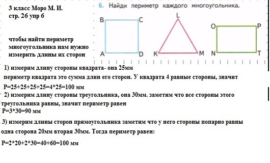 найди периметр каждого многоугольника . 3 класс ст 26 номер 6